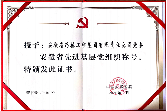 值此建党100周年之际,安徽路桥集团党委荣获安徽省“先进基层党组织”称号,既是表彰,更是激励。关山初度尘未洗,策马扬鞭再奋蹄。凝心聚力、励精图治的安徽路桥集团党委,正以百倍的信心和干劲,带领全体干部职工紧扣“百亿路桥集团”目标,奋力谱写公司改革发展时代新篇章!
