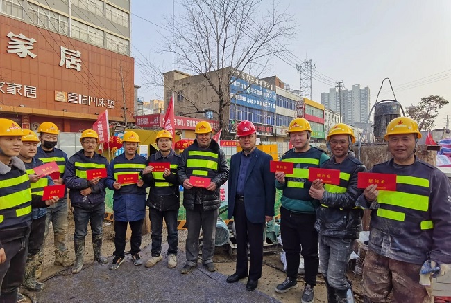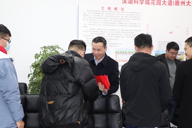 卢军球表示,新春期间职工坚守施工现场,克服困难,默默奉献,充分展现了舍“小家”,顾“大家”的家国情怀。他对坚守岗位的职工表示感谢,并送上慰问品。同时,他还要求项目部全体员工站好节日期间这班岗,落实好疫情防控措施,在保证施工安全及工程质量的前提下,加快工程进度,再接再厉,再创佳绩。