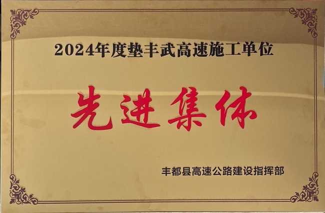 建工建投集团重庆垫丰武高速TJ04标项目荣获丰都县交通运输委员会“先进集体”称号和丰都县高速公路建设指挥部“2024年度垫丰武高速施工单位先进集体”称号。