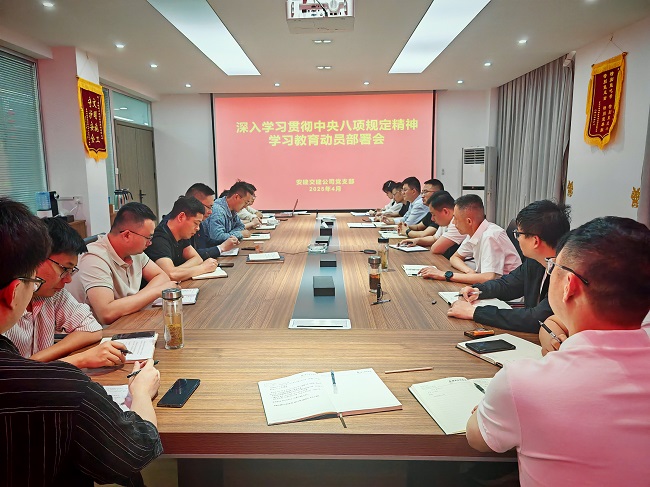 4月19日,安建交建公司党支部召开深入学习贯彻中央八项规定精神学习教育动员部署会,对学习教育工作进行动员部署。领导班子成员、所属党员干部参加。