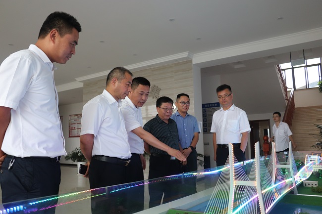 徐文联一行首先来到S211PPP项目驻地,实地查看了项目部的党建及企业文化建设情况,随后赴G347PPP项目沥青施工作业点及杨湾河特大桥主墩现场调研项目施工进度。调研中,徐文联分别听取了S211PPP、G347PPP项目负责人关于工程概况、党建工作、疫情防控、防洪防汛等工作汇报。