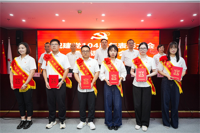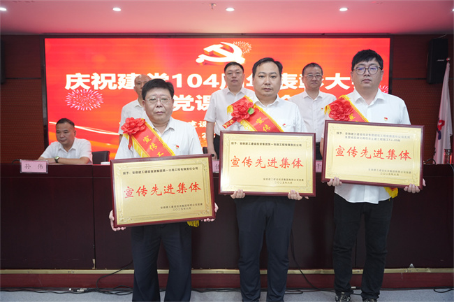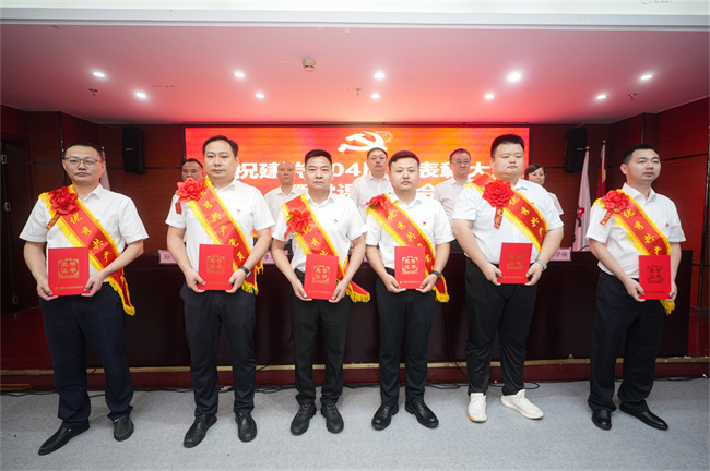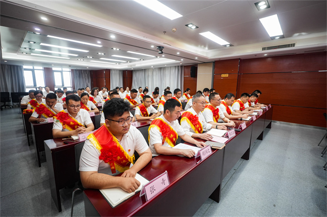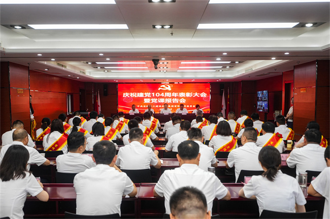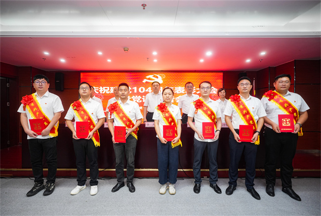 6月26日上午,建工建投集团召开庆祝建党104周年表彰大会暨深入贯彻中央八项规定精神学习教育专题党课报告会,隆重表彰过去一年在公司各条战线上忠诚担当、扎实苦干、奋发有为的先进基层党组织、优秀共产党员和优秀党务工作者以及在宣传工作中涌现出来的先进集体和先进个人。公司党委书记、董事长任杰作了题为《坚定信念锤炼作风 推动建工建投集团各项工作全面进步全面过硬》的专题党课。公司领导班子为获奖代表颁奖,党委副书记、工会主席干戈主持会议。