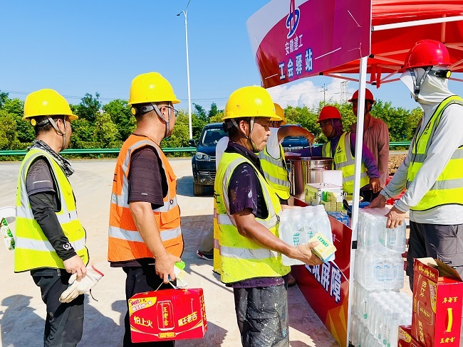 6月30日,建工建投集团宁九高速项目在拌合站工地设立工会驿站,并对临建队伍开展“送清凉”慰问活动,为高温下坚守的一线建设者送上关怀与保障。