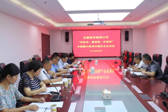 按照集团党委《关于在推进“两学一做”学习教育常态化制度化中开展“讲政治、重规矩、作表率”专题教育的实施方案》部署要求,安徽路桥集团于8月28日召开公司领导班子“讲政治、重规矩、作表率”专题警示教育专题民主生活会,党委书记、董事长、总经理盛明宏主持会议,公司领导班子全体成员参加会议。建工集团纪委书记宋志华、纪委副书记龚志酬到会指导。
