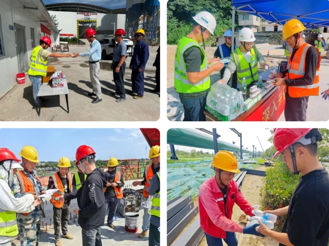 所属项目组织开展了防暑降温知识培训,实行 “做两头、歇中间” 的错峰作业方式。施工现场设置了休息区和“清凉驿站”,区内配备了遮阳棚、风扇、藿香正气水、人丹等防暑药品,以及饮用水、绿豆汤、西瓜等清凉饮品。在保障生产与质量的同时,保障员工安全健康,用实际行动为夏日施工“降温”,共筑项目顺利推进的坚实基础。