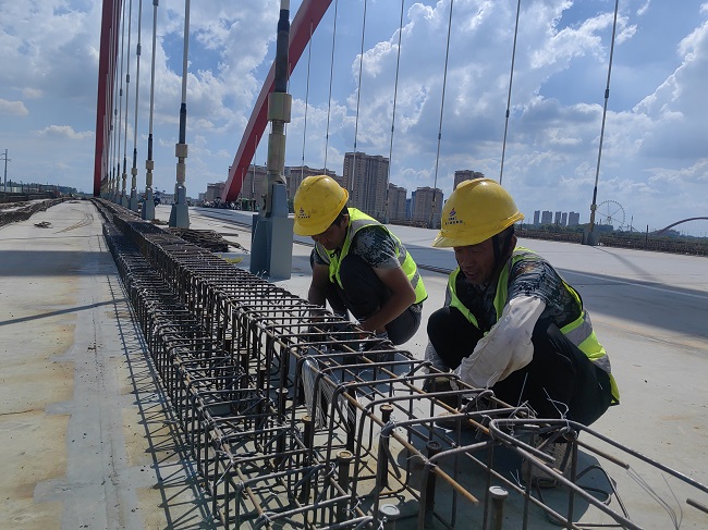 太和县人民路颍河大桥项目建设不停歇。工人们坚守岗位,全力开展钢桥面护栏基础及盖板枕梁钢筋绑扎作业。他们以汗水诠释责任,用实干保障工程进度,彰显建设者的担当。目前,项目已完成全部工程97%,下一步将进行安装护栏及路面沥青铺筑工作。
