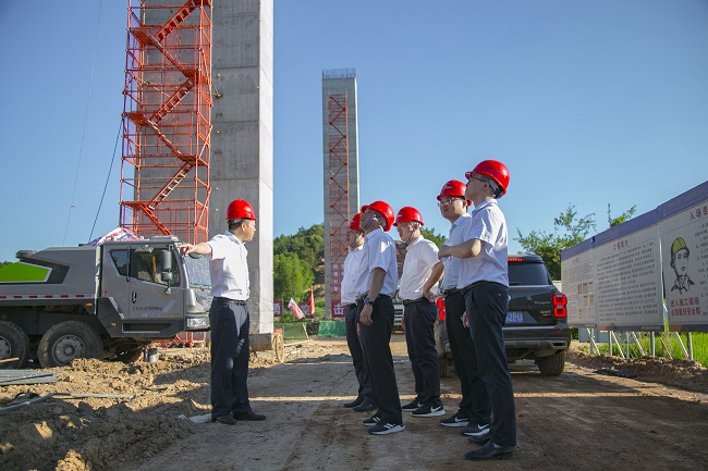 徐文联一行直接来到项目官田冲大桥等施工现场,详细了解现场施工组织、安全质量、文明施工等情况。在项目部会议室,徐文联主持召开调研座谈会,听取项目负责人工作汇报,了解项目现阶段所面临的困难。徐文联指出,该项目是省级重点工程,建设工期紧、任务重,今年以来,项目部努力克服疫情、汛期等因素影响,抢抓施工进度,全面推进项目建设,取得较好成效。他要求,一要攻坚克难抢进度,积极协调,精心组织,合理调配资源,确保按时按节点完成建设任务;二要千方百计保安全,牢固树立安全生产“红线意识”和“底线思维”,打造平安工程;三要精益求精抓质量,注重全过程管控,创优质工程,树企业形象;四要精打细算创效益,强化成本管控,努力提升项目经济效益;五要全面从严抓党建,夯实党建基础工作,推深做实“三号联创”,为项目生产提供坚强政治保证。