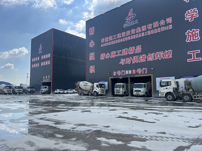 S20长固高速项目拌合站由1套180型和2套120型混凝土搅拌站组成,20台罐车整齐列阵,高效配合作业。为保障高效安全生产,项目操作人员定期对搅拌站主机进行清缸与维保作业,备足易损易耗件,场站常驻维修人员,全力保障机械高效运转。同时,项目积极开展有限空间作业安全交底培训,采取“错峰作业”模式,为员工配备防暑降温物资,设置临时休息区,确保作业安全。