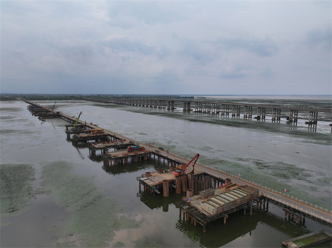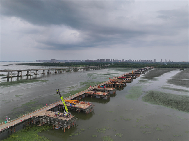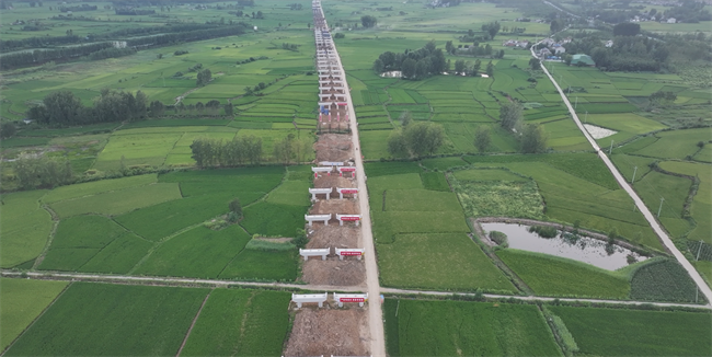 截至当前,项目累计完成产值27652万元,占合同总量的18.16%。路基工程关键段K20+420-K20+670原地面完成验收,同步推进路基清表1.4公里、清淤1.2万方,完成4%灰土试验段施工2000方,为后续大规模施工奠定坚实基础;桥梁工程进展显著,桩基已完成900根,占总量近六成,墩柱浇筑342个,完成总量18.3%,盖梁架设92座,占比13.7%,预制梁板完成286片,占总量10.8%,为下部结构施工顺利展开创造了有利条件;涵洞工程也在有序推进,已建成圆管涵5道、箱涵通道1道。