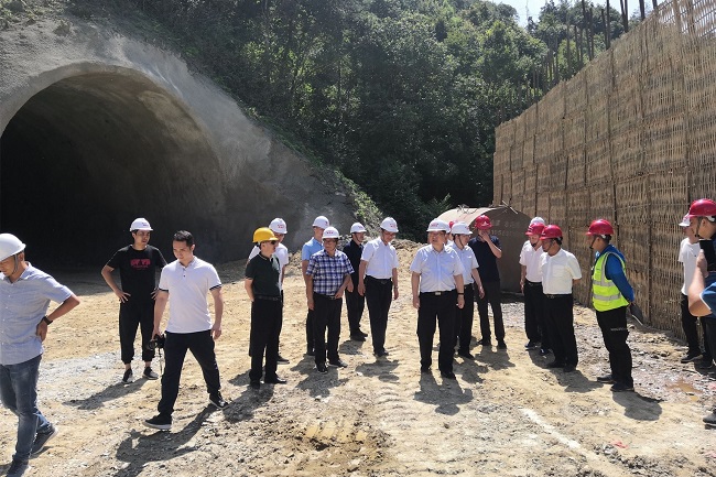钱东升一行深入施工现场,先后实地查看了拌合站、武阳互通、蔡坑隧道进出口等施工点,听取了项目关于疫情防控、质量安全、施工进度等项目工作情况的汇报。