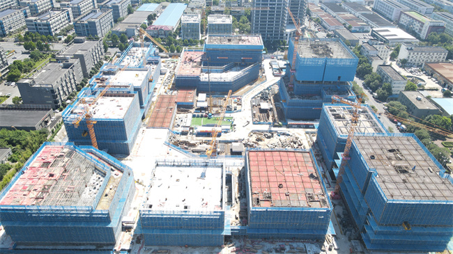 高科·数科技港项目现场塔吊林立,泵车挥舞长臂,将混凝土源源浇筑进节节攀升的楼体,施工人员挥汗奋战,向着下一个重要节点目标奋力冲刺。截至当前,1号楼主体结构浇筑完成约50%;2#、4#、5#、6#、7#楼栋已接近全面封顶,计划完成屋面女儿墙与构架施工,推进二次结构墙体砌筑施工;3号楼主体结构浇筑完成约70%。下一步,项目部将合理加快1号楼主体结构的施工节奏,保质保量完成项目重要节点目标。