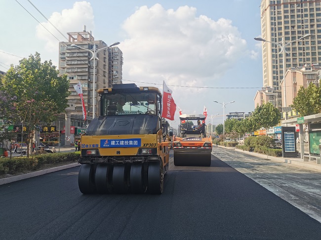 8月21日下午,由建工建投集团承建的灵璧县雨污管网提升改造EPC(二期)项目建设南路段顺利完成沥青下面层摊铺作业。