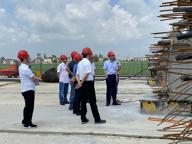 盛明宏与专家教授深入G347PPP项目改建拼宽段、杨湾河特大桥箱梁预制场、主桥15#墩施工现场调研指导,听取了项目管理人员关于现场施工进展情况、项目重难点和科研创新工作的汇报。