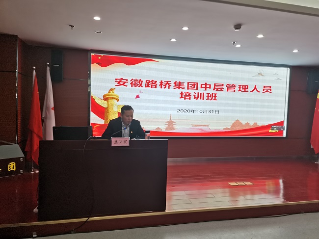 10月31日上午,安徽路桥集团2020年中层管理人员培训班在安建国际大厦8楼会议室举行。公司党委书记、董事长盛明宏围绕学习贯彻习近平总书记考察安徽和扎实推进长三角一体化发展座谈会上的重要讲话精神作专题辅导,公司领导班子成员、中层管理人员共计60余人参加了培训。