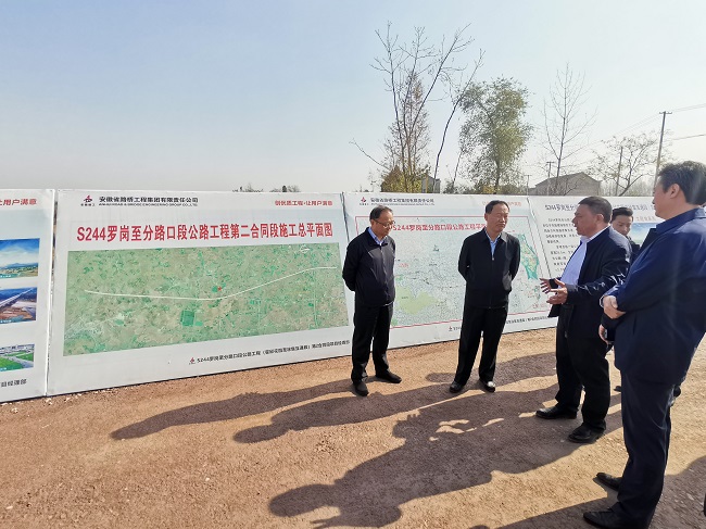 11月13日上午,六安市委副书记、市长叶露中莅临六安S244公路工程2标调研项目建设工作,市委常委、副市长束学龙、市交通局局长李卫东等相关领导参加调研。