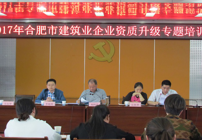 4月19日下午,李晓明同志受合肥市城乡建委邀请,为该市近期拟开展资质升级的百余家建筑业企业作专项辅导培训。建委建管处副处长刘四青、行政审批处副处长宣秋华等,四县一市住建局分管领导及相关业务科室负责同志,全市有关建筑业企业资质管理工作负责同志参加培训会。