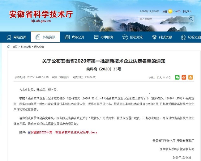 在路桥集团的统一部署下,在各部门大力支持配合下,历时一年多,从资料收集、信息汇总到正式申报,本次高新技术企业认定工作最终圆满完成。安徽省科学技术厅、安徽省财政厅、国家税务总局安徽省税务局联合下发皖科高[2020]35号文件正式批准检测公司获得高新技术企业认定。