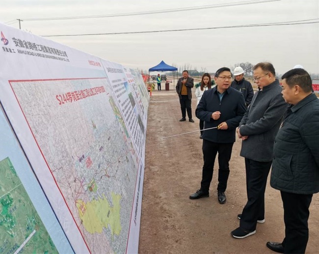 12月18日上午,安徽省交通运输厅党组成员、副厅长秦勤一行到六安S244项目调研工程进展情况。六安市交通运输局党组成员、副局长韦勇等参加调研。