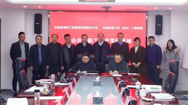 25日上午,安徽路桥集团与中国地质大学(武汉)工程学院《联合共建新工科产学研基地合作协议书》签约仪式在公司9楼会议室举行。焦玉勇与公司党委副书记、总经理欧阳志宜分别代表双方签约。