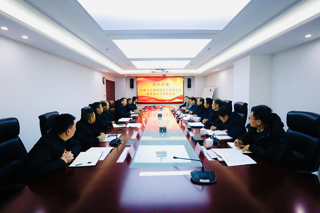 1月7日下午,安徽省交通规划设计研究总院党委书记苏新国来公司考察交流,公司党委书记、董事长盛明宏接待了苏新国一行,并于公司9楼会议室进行座谈。