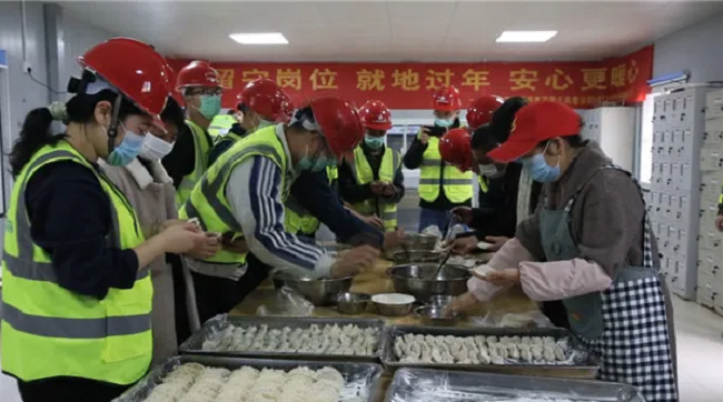 活动现场,教的人不厌其烦地讲,学的人认认真真地包,大家边聊边包,互帮互教,各显其能,欢声笑语不绝于耳。今年21岁的项目部安全员徐银柱去年大学毕业就来到项目部工作,今年也是第一次留在外地过年。“品尝着自己亲手包的饺子,感受到了浓浓的家乡味道。在这里我也祝愿我的家人身体健康,万事如意。”端起热气腾腾的饺子,选择留在工地过年的徐银柱眼角有些湿润。也是在这一刻,家人般的团圆饺子让彼此的心走得更近。