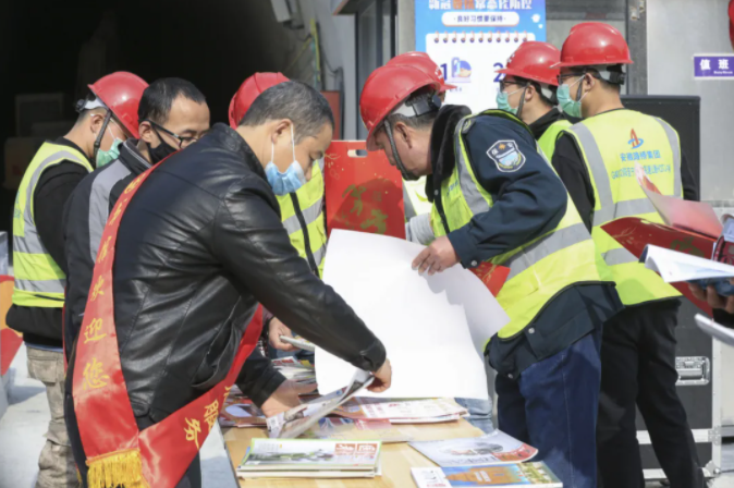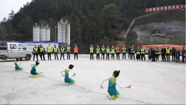 “我们在歙县挺好,请家人放心,祝全国人民新年快乐……”就地过大年,温情暖心间。2月4日,歙县文旅体局组织文艺志愿服务小分队奔赴黄千高速Ⅱ标蔡坑隧道出口,为留守岗位、就地过年的高速建设者送上了精彩的文艺演出,歌曲、舞蹈、串烧……现场欢歌笑语、掌声不断。“能为黄千高速建设出一份力,再苦再累,我们心甘情愿。”在互动环节,主持人随机采访高铁建设者时,许多建设者额都认为,虽然今年积极回应国家就地过年的号召,不能陪家人一起过年,但是奋战施工一线更能体现出作为一名筑路工人的价值。