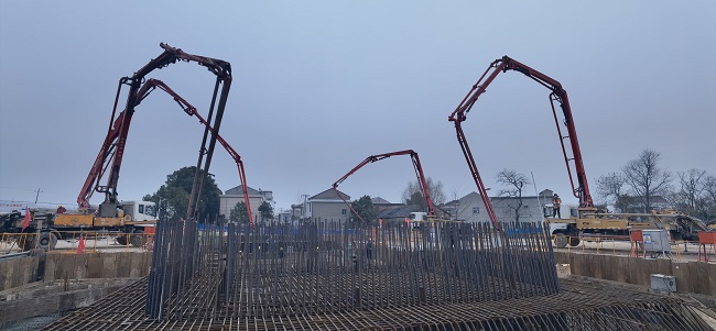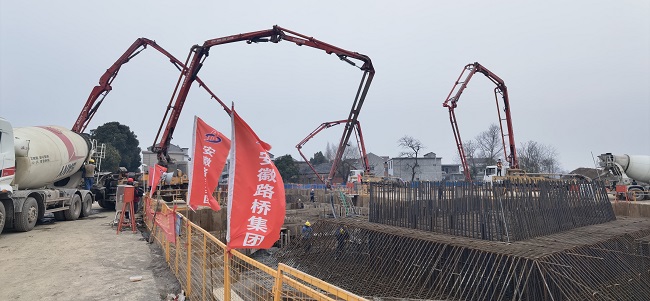 2月5日早上8点,在G347望江至宿松段一级公路项目杨湾河特大桥的施工现场,来自江苏、河南和贵州等省的四十多名工人刚刚结束了15号主墩承台混凝土浇筑工作。