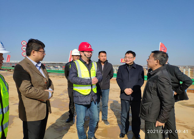 2月20日,安徽省交通运输厅党组成员、总工程师章后忠,建设管理处处长杨菲铃等一行赴明巢高速合肥段路基03标项目调研春节节后复工复产工作。合肥市交通投资有限公司董事长黄惠民,明巢公司总经理程岗等参加检查。
