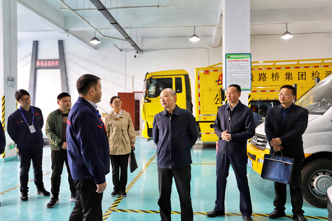 赵时运现场查看了检测公司功能室和检测车库,详细了解了检测设备的功能、参数等技术指标。随后,在检测公司会议室主持召开座谈会,听取了路桥集团党委书记、董事长盛明宏关于“十三五”改革发展和“十四五”发展目标等情况的汇报。