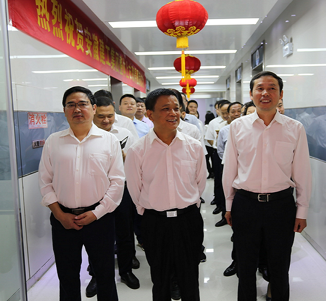 致辞结束后,宋书记和盛董事长共同为新办公场所揭幕。随后,在公司领导班子的陪同下,宋书记参观了安徽路桥集团新办公场所。