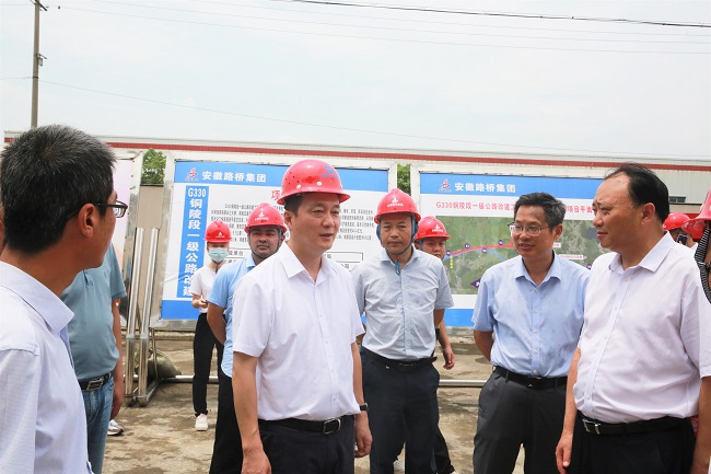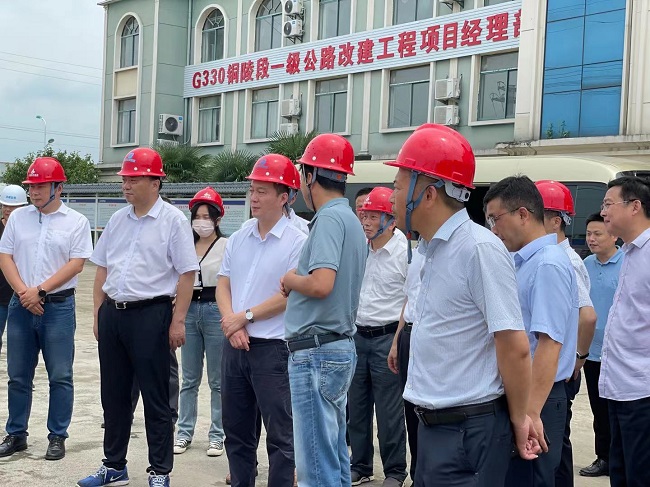 7月8日上午,铜陵市委副书记、市长孔涛莅临G330铜陵段一级公路改建工程项目进行调研,铜陵市交通运输局、发展改革委、自然资源和规划局、住房城乡建设局、交投集团等有关负责人,公司总工程师王家林等参加调研。
