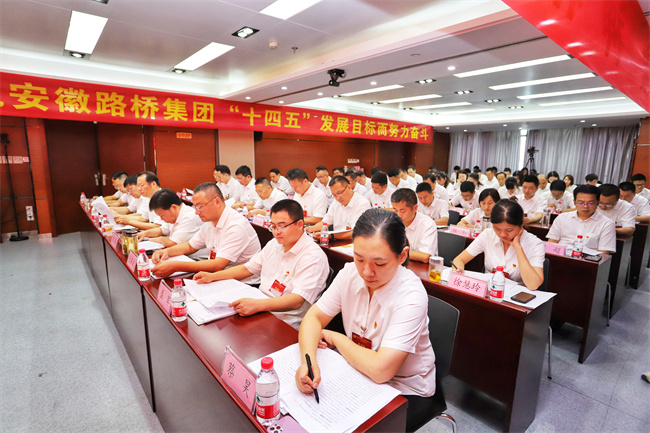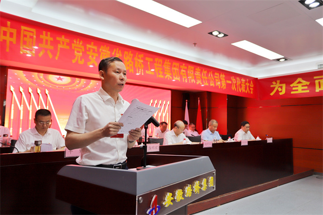 会上,公司党委书记、董事长盛明宏作了题为《弘扬建党精神 锚定前进方向 为全面实现安徽路桥集团“十四五”发展目标而努力奋斗》的党委工作报告。报告全面总结和回顾了公司党委过去五年的工作,明确了今后五年公司改革发展的总体思路:以习近平新时代中国特色社会主义思想和党的十九大精神为指导,以推动高质量发展为主题,以改革创新为根本动力,围绕“百亿路桥集团”战略目标,立足于“施工管理、投资运营、试验检测、设计咨询、设备租赁”五大业务板块,聚焦兴企“三要素”,坚持管理“四项理念”,落实选人用人 “十个标准”,做到“和谐发展、壮大企业、富裕员工、奉献社会”,在“千亿建工”的征程中勇创佳绩、勇当先锋,成为安徽省最具竞争力的基础设施投资建设运营商。对今后五年全面加强和改进党的建设方面,要严格落实新时代党的建设总要求,以加强党的领导为根本,以推进全面从严治党为主线,以引领改革发展、助推生产经营为着力点,全面提升党建工作质量,充分发挥党委领导作用,为企业高质量发展提供坚强的政治、思想和组织保证。