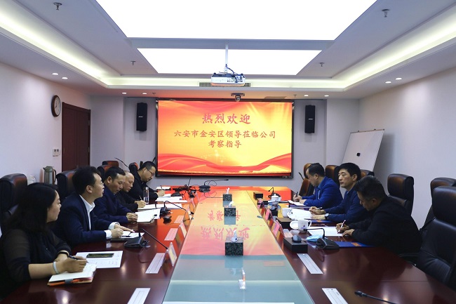 10月12日上午,六安市金安区区委书记霍绍斌一行来公司考察交流,公司党委书记、董事长盛明宏接待了霍绍斌一行,并于9楼会议室主持召开座谈会。