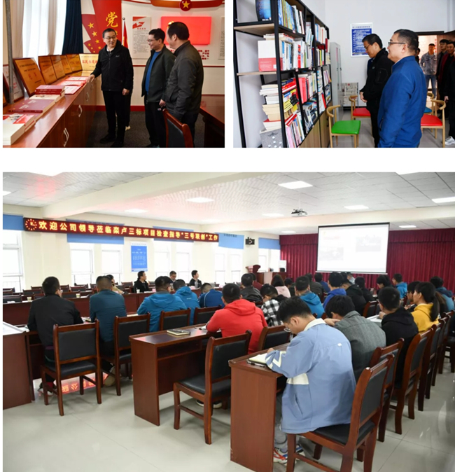 干戈一行首先赴项目施工现场实地查看了四号梁场、九沟特大桥、秋林隧道等施工点的生产建设情况及项目驻地党团建设情况,并在项目部四楼会议室详细了解了项目生产进度、质量、安全环保等方面的工作开展情况,重点听取了“三号联创”创建工作的汇报。