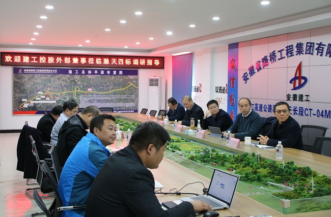 11月11日,建工控股外部董事李家俊、朱其林、王亚峰、徐琳一行赴滁天高速04标调研项目进展情况。建工控股办公室副主任毛红贺,公司党委副书记、总经理欧阳志宜,公司党委委员、副总经理、总工程师陈莘,二分公司党总支书记刘峰参加调研。