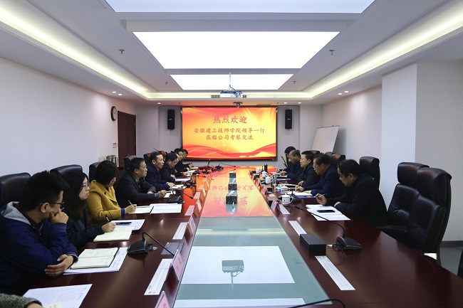 11月19日上午,安徽建工技师学院党委书记、院长余志刚来公司考察交流,公司党委书记、董事长盛明宏接待了余志刚一行,并于9楼会议室召开座谈会。
