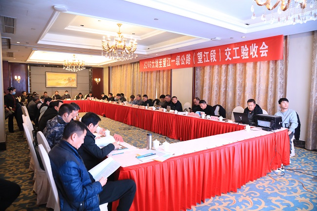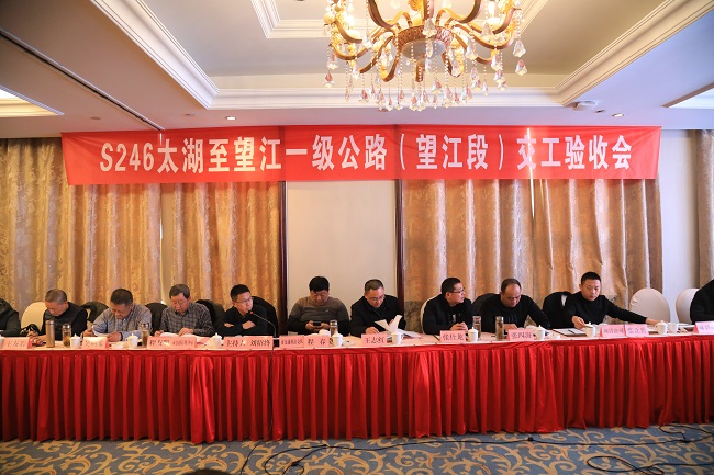 1月16日上午,在S246项目部召开了交工验收预备会,成立了交工验收委员会并推举了组长,分成内、外业验收组,对工程整体进行验收。下午召开了项目交工验收会,安徽路桥集团党委副书记、总经理欧阳志宜,望江县政协副主席、交通运输局局长王浩,安庆市交通执法支队、公路管理局、望江部分县直单位、项目设计、施工、监理等单位相关负责人共40余人参加了会议。