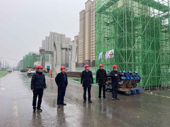 会后,盛明宏一行深入包公大道项目施工现场,冒雪实地查看项目建设情况,并提出指导意见。