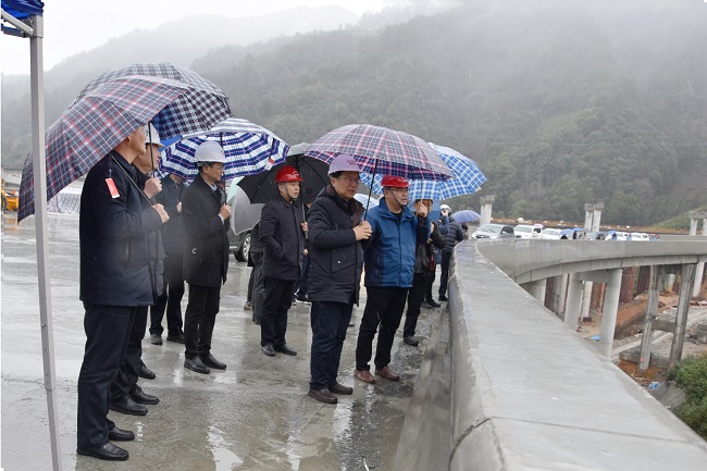 2月17日下午,安徽交控集团党委副书记、总经理钱东升,副总经理王宏祥赴黄千高速02标项目调研,安徽路桥集团党委副书记、总经理欧阳志宜,党委委员、副总经理江仲明,四分公司总经理洪杰等参加调研。