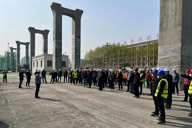 4月2日,由合肥市重点工程建设管理局组织的级配碎石路床摊铺机施工效果观摩会,在安徽路桥集团承建的包公大道03标段现场举办。全市在建所有市政项目施工单位、监理单位、检测单位代表等共计80余人参会。