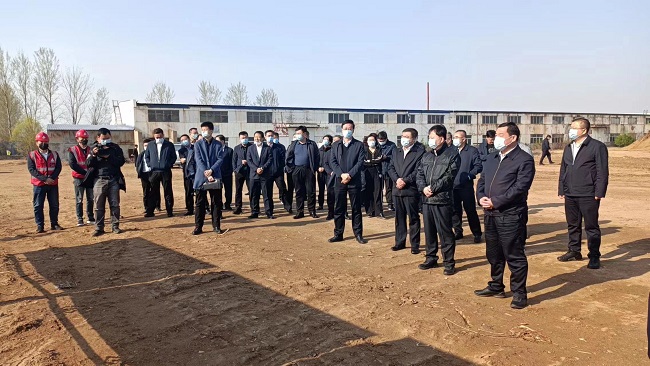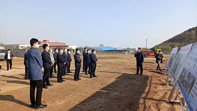 2022年4月15日,山东省烟台市委常委、栖霞市委书记包华,栖霞市市长赵永刚一行莅临路桥集团松山污水处理厂项目调研指导,一分公司副总经理冷峰及项目部相关人员参加调研。