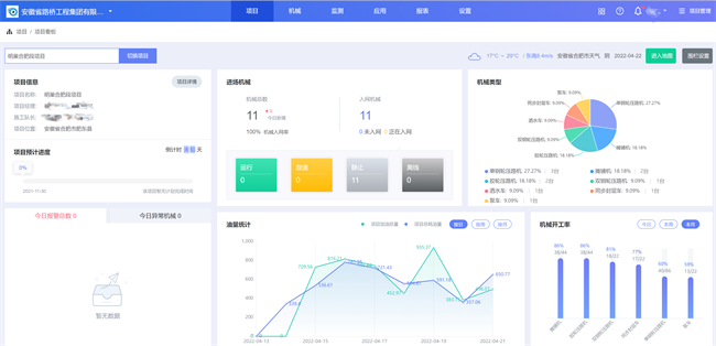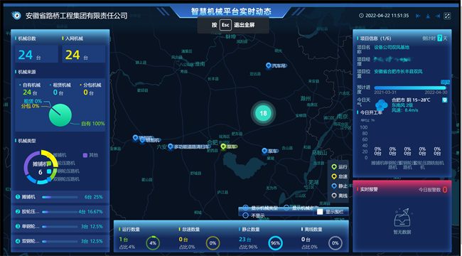 在安徽路桥集团设备租赁公司的监控室,一台大屏幕引人注目,实时显示着企业24台机械的工时、油量等动态数据。“通过指挥官系统,每一台机械在哪里施工,出现了什么故障,作业时间多长,一目了然。”朱小军介绍,企业引进开发了机械设备指挥官系统,实现所有路面设备远程智能化管理,施工管理进一步优化,施工效率明显提升,油耗成本大幅降低。他表示,下一步企业将加快数字化转型,对工程机械的进场、施工、调度、结算等全流程进行数字化、智能化重构,实现智能化管理和生产。