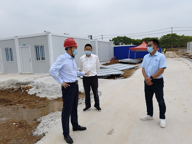 六安东城健康驿站工程是六安市新冠疫情防控应急建设项目,由安徽路桥集团承建,首期960间隔离房已于4月20日按期交付,目前二期工程1200间隔离房正在热火朝天地施工。盛明宏来到施工现场,查看项目建设情况,研究部署下一步建设工作。盛明宏指出,六安东城健康驿站工程是六安市同期建设的健康驿站中体量规模最大,场地情况最为复杂,施工难度最大,施工周期最短,且同期交付数量最多的项目。所有参建人员克服工期短、工程量大、环境艰苦、疫情防控形势严峻、资源调配难等诸多困难,付出了巨大艰辛与努力,顺利完成首期工程建设,展现了国有企业的责任与担当。盛明宏强调,健康驿站建设是政治任务,所有参建人员务必提高政治站位,加强项目工期、质量、防疫管理,参建单位主要领导要驻点现场、靠前指挥,各单位、各部门全力配合、提供支持,高标准、严要求完成建设任务,向六安市交上一份满意的答卷。