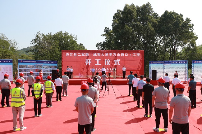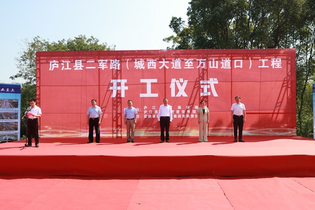 7月1日上午9时16分,阳光明媚,彩旗招展,庐江县二军路庐城段、万山段工程项目开工仪式在万山高速道口举行。县委书记许华为出席仪式并宣布开工。县人大常委会主任杨进真、县政协主席王世钧、副县长杨剑波出席仪式,副县长刘庆春主持仪式并致辞。公司党委副书记、总经理欧阳志宜,四分公司党总支副书记、总经理洪杰及相关人员等共同见证这一重要时刻。