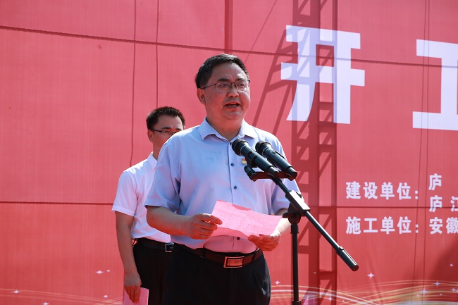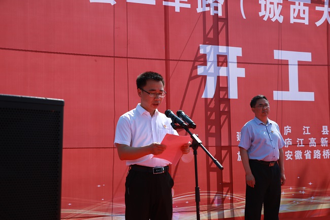 刘庆春主持开工仪式,简要介绍庐江县二军路工程项目,并对各参加单位及项目建设提出殷切期许。