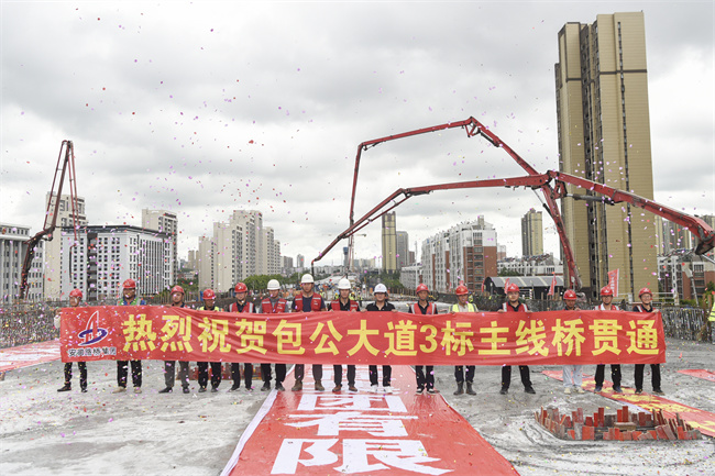 7月6日上午9时许,经过连续16个小时的彻夜奋战,随着第59联顶板现浇箱梁的浇筑完成,由安徽路桥集团承建的包公大道(二十埠河-龙兴大道)道路工程-3标段,历时10个月顺利完成主线桥合龙,至此包公大道主线桥全线贯通!
