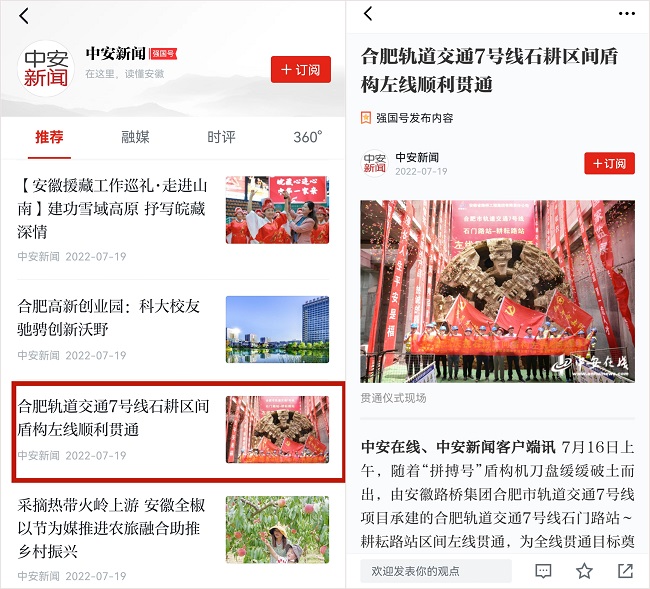 “合肥市人民政府”官方账号、《合肥日报》官方微信、中安在线及其所属新媒体平台、强国号,《市场星报》及所属新媒体客户端对这一节点重点关注,对路桥集团建设者的良好风貌进行细致描绘。