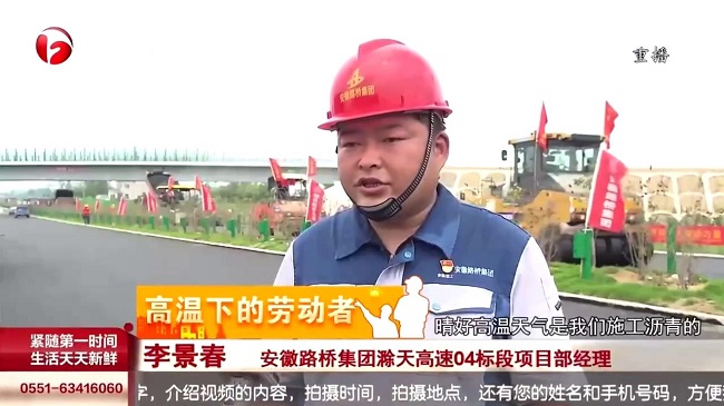 7月19日晚,安徽电视台《第一时间》栏目以《滁州:战高温 滁天高速筑路人用汗水演绎奋斗姿态》为题,报道了安徽路桥集团滁天高速04标项目建设者战高温、抢进度,加班加点推进项目建设。