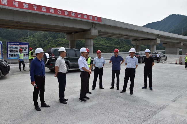 7月21日上午,安徽省交通厅党组成员、副厅长秦勤一行莅临黄千项目调研指导。安徽省交控建设管理有限公司党委书记、总经理黄学文,公司党委副书记、总经理欧阳志宜,投资管理部经理、四分公司党总支副书记、总经理洪杰等参与调研。