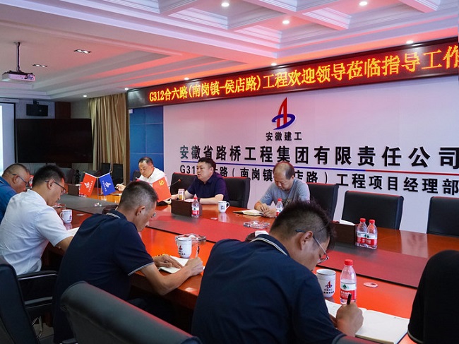 在G312合六路项目会议室,任杰听取了交建公司整体情况的汇报,对项目现场管理及交建公司机关人员下沉施工一线、兼职项目岗位的做法予以充分肯定,并期望安建交建公司全体员工能继续保持良好工作势头,逐步提升安徽路桥集团市政品牌形象。